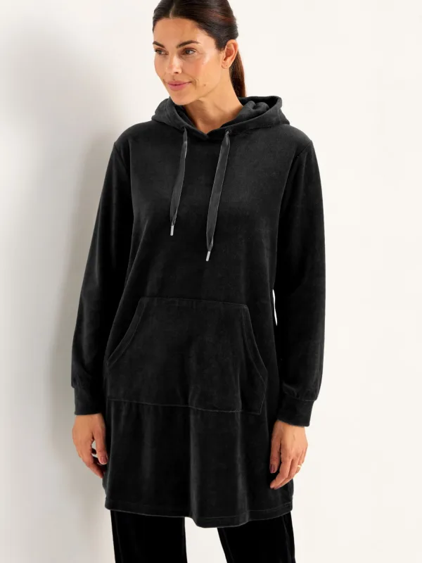 Design: Capuchon met trekkoord, Kangaroo zak; Type sluiting: Slip; Materiaal: Fluweel/Nicky Velours; Halstype: Capuchon; Motief: Effen; Extra's: Op staal naden, Gladde stof; Pasvorm: Losse pasvorm; Armlengte: Lange mouw; Lengte: Normale lengte