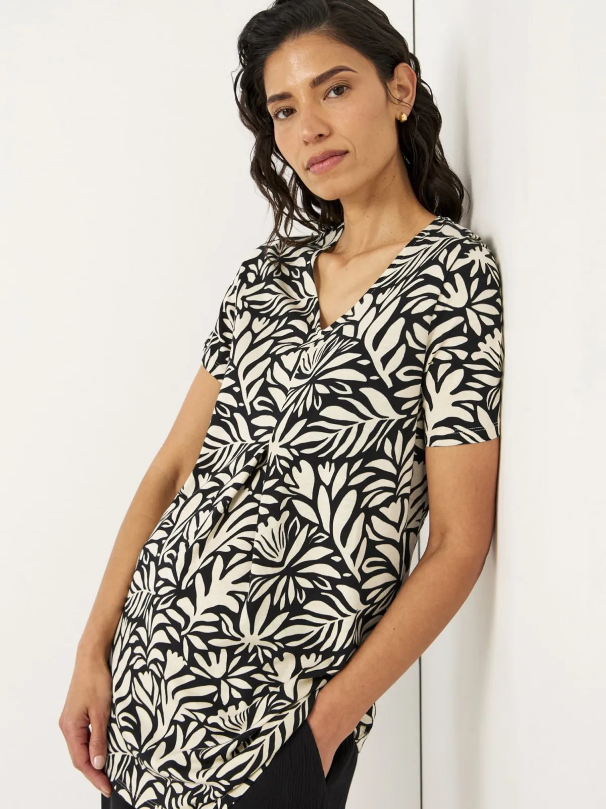 Design: Gevoerde zoom/rand; Materiaal: Jersey; Kraag: Tuniek kraag; Details: Plooien; Extra's: All-over patroon, Voelt zacht aan; Pasvorm: Losse pasvorm; Armlengte: Kwartmouw; Lengte: Normale lengte