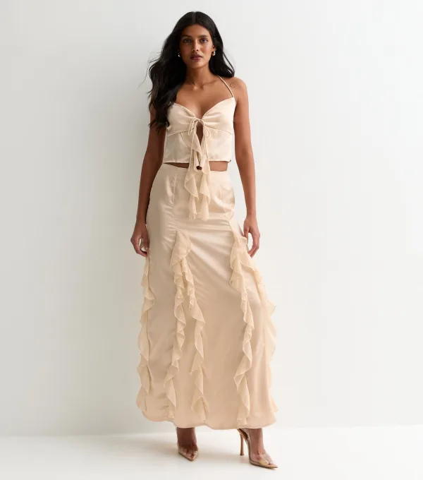 Champagne Satijnen Ruffle Maxi Rok