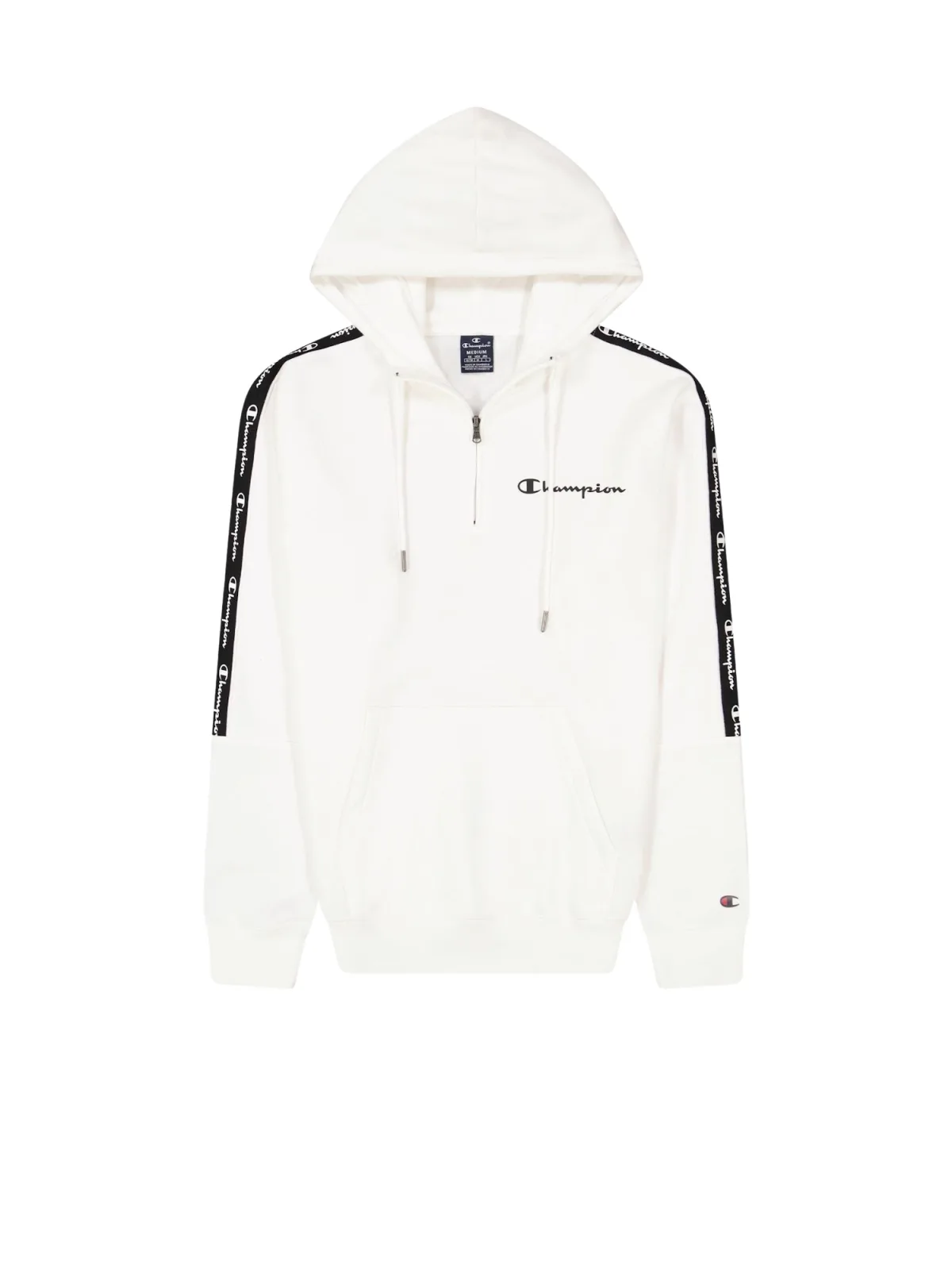 Effen heren hoodie met halfrits en speelse jacquardbanden in een comfortabele pasvorm.