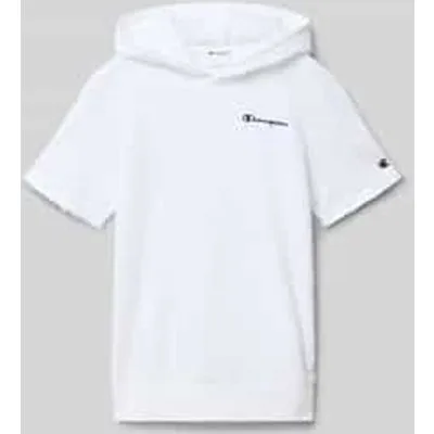Kinderen T-shirt van CHAMPION;katoenmix;regular fit;Capuchon;gestikt logo;Kangoeroezak;elastische band;ruglengte bij maat 140: 50 cm