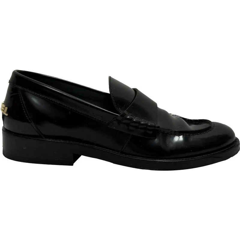 Chanel Glanzende Logo Instappers in Zwart Kalfsleer