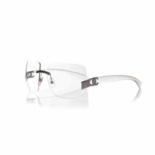 Chanel randloze, rechthoekige zonnebril met helder montuur