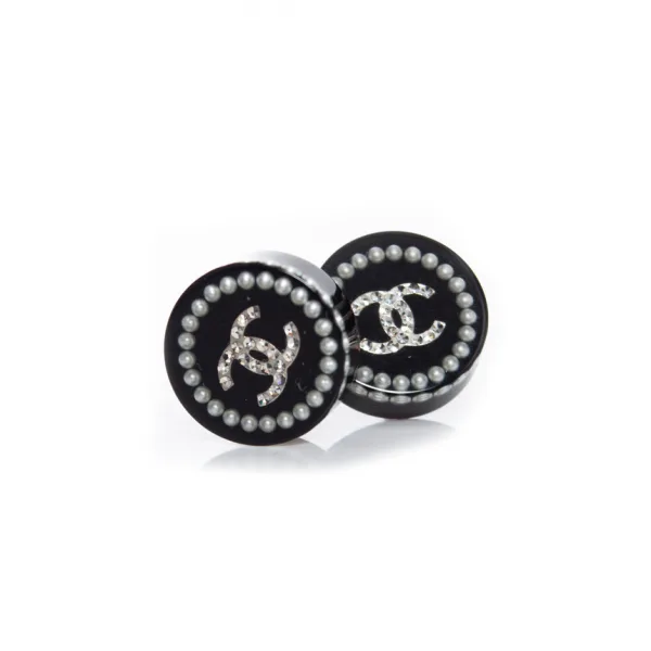 Chanel ronde oorbellen met parels en rhinestones