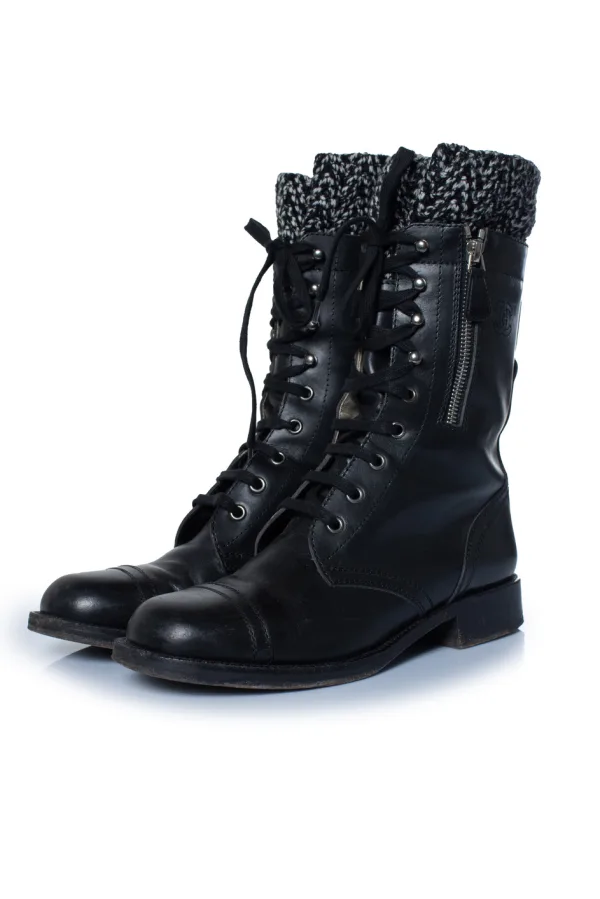 Chanel Zwarte leren cc tweed sok combat boots