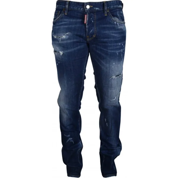 Cool Guy katoenen stretch Dsquared2 jeans in blauw met een verwoest effect.Vijf zakken.Logo aan de achterkant op een grijze en zwarte patch.Knoopsluiting.98% Katoen, 2% Elastaan.Gemaakt in Italië.