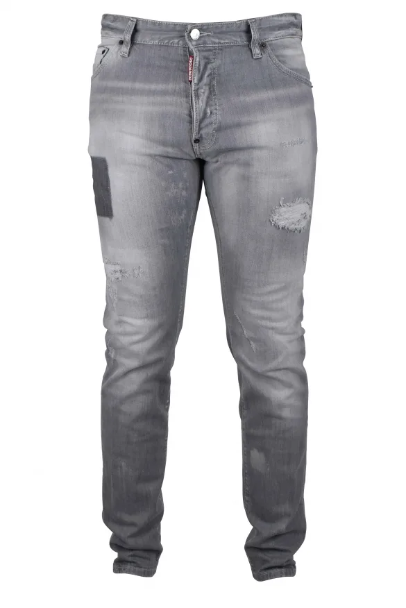 Cool Guy Jean Dsquared2 lichtgrijs.Distressed versleten effect met scheuren.Ritssluiting met rode logopatch.Wit label op de achterkant Dsquared2.Vijf zakken.98% katoen en 2% elastaan.Gemaakt in Italië.