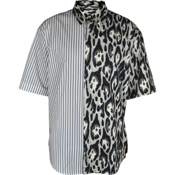 Overhemd met Roberto Cavalli-print.Jaguar-print op het shirt met een contrasterend gestreept schouderstuk.Logopatch op de hals.Puntige kraag.Korte mouwen.Verborgen knoopsluiting aan de voorkant.Casual pasvorm.Gemaakt in Italië.