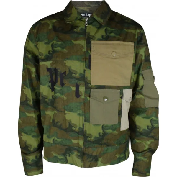 Palm Angels-jas.Militaire groene kleur.Camouflageprint.Klassieke kraag.Ritssluiting aan de voorkant.Lange mouwen.Vier zakken aan de voorkant in groen, bruin en beige.Klepzak op de mouw.100% katoen.Gemaakt in Italië.