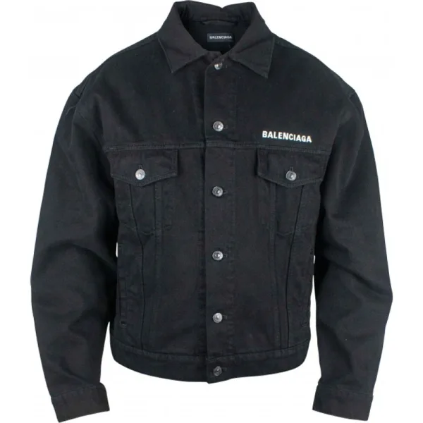 Balenciaga zwart spijkerjack met lange mouwen.Wit logo op de borst.Witte CREW print op de achterkant.Knoopsluiting aan de voorkant.Twee klepzakken op de borst.Zijzakken.100% katoen. Gemaakt in Italië.
