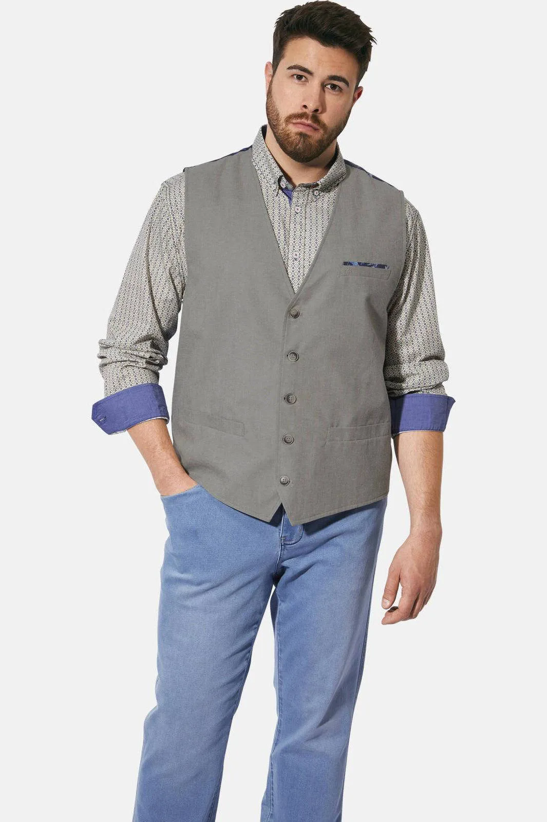Charles Colby gilet DUKE BARNABOR Plus Size met all over print grijs Prijzen