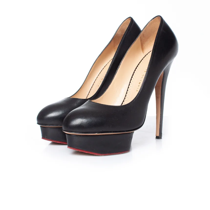 - Bij secretsales.nl kun je Charlotte Olympia Zwarte leren plateau pumps kopen voor slechts €404,00