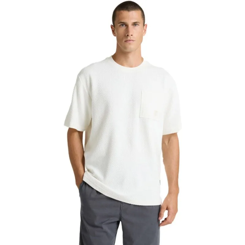De Boaz White van Chasin’ is een heren T-shirt in off white kleur. Het is gemaakt van katoen en geweven met een dobby structuur. De ronde hals houdt het ontwerp strak en eenvoudig. De pasvorm valt groot en de lengte is korter. Draag het met een jeans of short voor een verzorgde, moderne look.