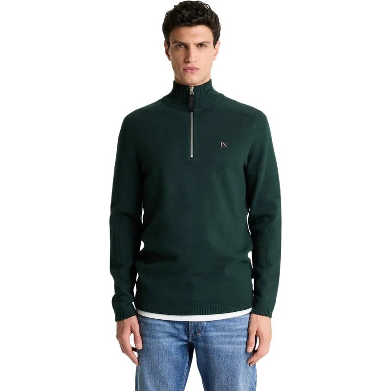 Specificaties: * Pasvorm: regular fit; hoge kraag; korte ritssluiting in de hals * Manchetten: ribgebreide manchetten in de mouwen en zoom * Kleur: donkergroen * Materiaal: 52% vicose - 26% polyester - 22% polyamide