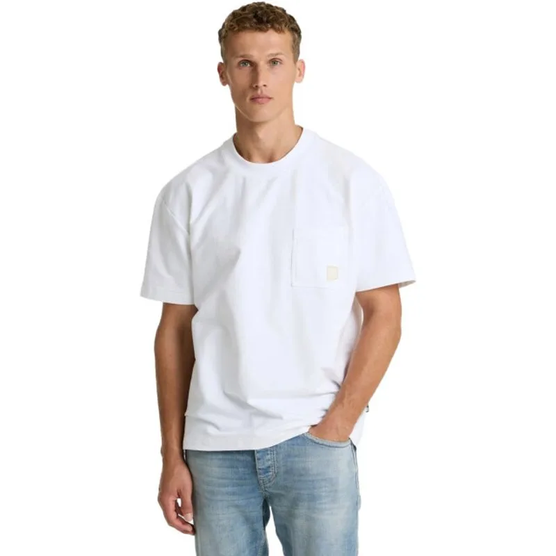 De Pato White van Chasin' is een heren T-shirt in off white met een ecru nuance. Het heeft een ronde hals, een normale lengte en een regular fit in een recht model. De stof is gemaakt van katoen met elastaan voor lichte stretch en is afgewerkt met een borstzakje. Draag het onder een open overshirt voor een rustige, verzorgde look. Een heldere basis die je stijl eenvoudig en zelfverzekerd houdt.