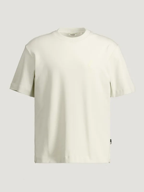 Voor een relaxte, moderne look is dit oversized heren T-shirt van katoen van CHASIN' een fijne basis in je kast. Het T-shirt heeft een ronde hals, korte mouwen en een ruime pasvorm die ontspannen om het lichaam valt. De kleur 'SILVER BIRCH' is een zachte ecru tint die rustig oogt en makkelijk combineert. Voorop is het ontwerp rustig gehouden, terwijl de backprint op de rug zorgt voor een stoer detail.Details die je elke dag aantrekt Gemaakt van 100% katoen, voelt zacht en comfortabel aan op de huid Oversized pasvorm voor een ontspannen, moderne uitstraling Ronde hals en korte mouwen, ideaal voor dagelijks gebruik Ecru kleur 'SILVER BIRCH' die makkelijk combineert met jeans, chino of shorts Backprint op de rug voor een grafisch accent Geen sluiting en geen borstzak voor een clean, rustig front Wasbaar op 30 graden en lauw strijkbaar (1 punt), eenvoudig in onderhoudCasual styling op jouw manierDit T-shirt past goed in een dagelijkse garderobe. Draag het los op een straight fit jeans en sneakers voor een casual look. Voor een iets strakkere uitstraling kun je de zoom gedeeltelijk in je broek dragen. De oversized pasvorm geeft genoeg ruimte om het ook over een longsleeve te stylen op koelere dagen.CHASIN' als vaste waarde in je kledingkastCHASIN' richt zich op eigentijdse herenmode met aandacht voor pasvorm en draagcomfort. De collecties sluiten aan bij een casual, dagelijkse stijl, met items die je makkelijk combineert. Dit T-shirt past daar goed bij en is een praktische toevoeging aan je dagelijkse outfits.Een rustig T-shirt met grafisch detail dat je zonder nadenken uit de kast pakt.