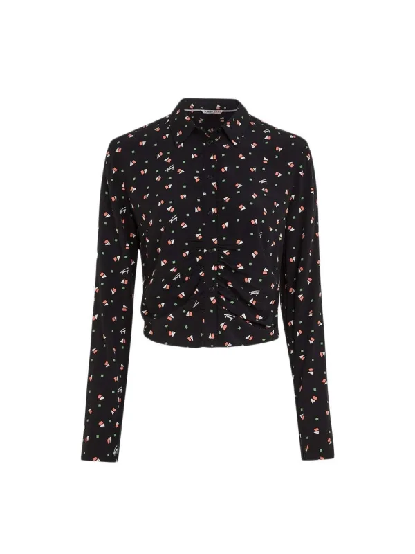 Tommy Jeans Ditsy dameschemise van synthetisch materiaal, zwart. Authentiek Tommy Jeans kledingstuk - streetwear/sportswear design van Tommy Jeans - Tommy Jeans voor dames, modieus en perfect voor dagelijks gebruik - de zwarte Tommy Jeans chemise is ideaal te combineren met de rest van je garderobe - comfortabele synthetische materialen - klassiek - Ditsy -