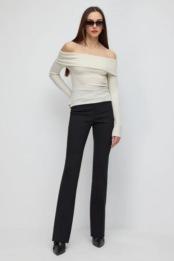 Design: Gevoerde zoom/rand, Nektape; Materiaal: Jersey; Halstype: Carmen hals; Motief: Effen; Extra's: Op staal naden; Pasvorm: Slanke pasvorm; Armlengte: Lange mouw; Lengte: Normale lengte