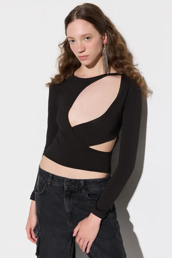 Design: Gevoerde zoom/rand; Materiaal: Jersey; Halstype: Ronde hals; Motief: Effen; Details: Cut-outs; Extra's: Op staal naden; Pasvorm: Slanke pasvorm; Armlengte: Lange mouw; Lengte: Korte pasvorm