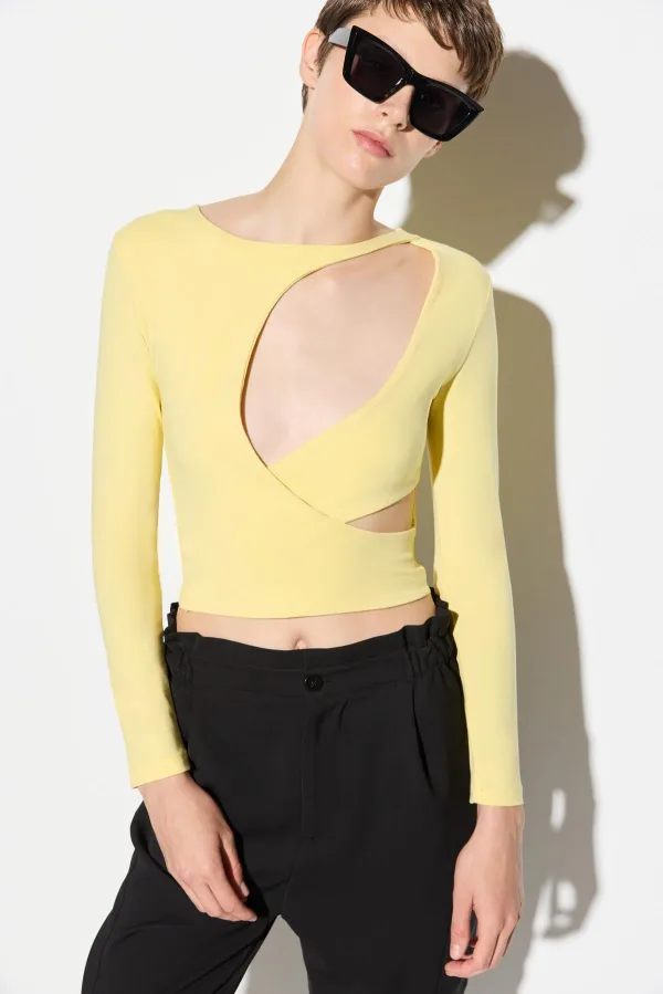 Design: Rechte zoom; Materiaal: Jersey; Halstype: Ronde hals; Motief: Effen; Details: Cut-outs; Extra's: Voelt zacht aan; Pasvorm: Aansluitende pasvorm; Armlengte: Lange mouw; Lengte: Korte pasvorm
