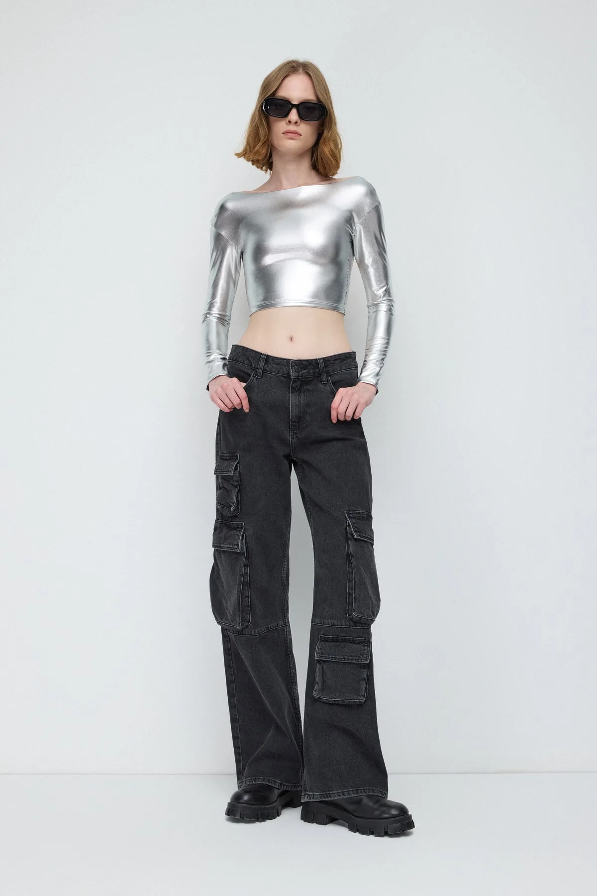 Design: Gevoerde zoom/rand; Halstype: Boothals; Motief: Effen; Soort bandjes: Normale bandjes; Details: Backless; Extra's: Op staal naden; Pasvorm: Slanke pasvorm; Armlengte: Lange mouw; Lengte: Korte pasvorm