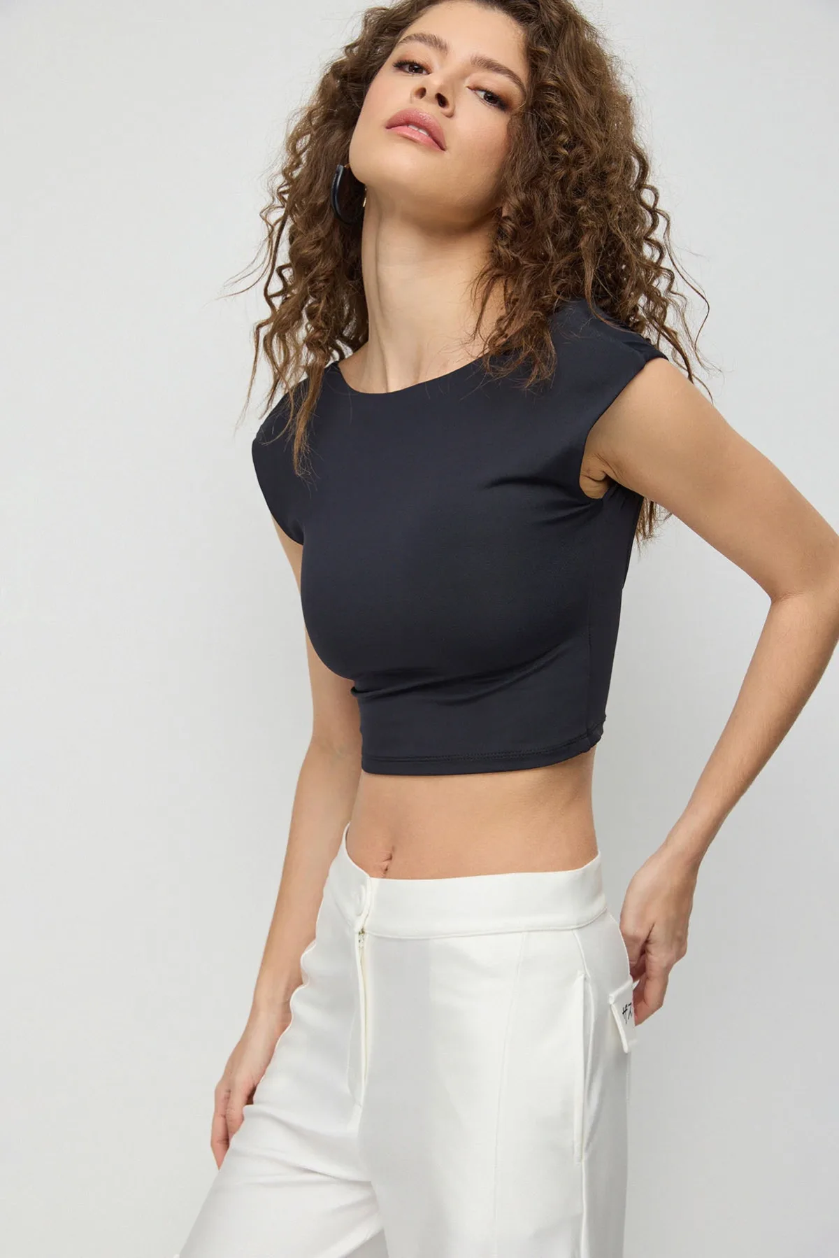 Design: Gevoerde zoom/rand; Materiaal: Jersey; Halstype: Ronde hals; Motief: Effen; Soort bandjes: Brede bandjes; Details: Backless; Extra's: Voelt zacht aan; Pasvorm: Slanke pasvorm; Armlengte: Mouwloos; Lengte: Korte pasvorm