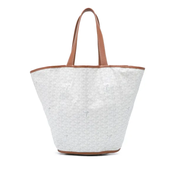 Draag moeiteloos, reis stijlvol, bezit de dag. Deze pre-owned Goyard tas biedt iconische elegantie voor jouw dagelijkse avonturen. Het kenmerkende chevronpatroon op gecoat canvas zorgt voor een blijvende stijl en het gestructureerde ontwerp biedt voldoende ruimte. Geniet van de verfijnde aanraking van bruine leren afwerking en handvatten. Met zijn duurzame, onderhoudsvriendelijke constructie is deze tas klaar voor alles. Perfect voor werk, weekenden of reizen, het integreert naadloos in jouw dynamische levensstijl. Afmetingen: 34 x 25 x 23 cm Conditiebeoordeling: B+ Informatie over de conditie: Achterzijde Exterieur Versleten. Onderzijde Exterieur Versleten. Hoeken Exterieur Versleten. Voorkant Exterieur Versleten. Handvat Exterieur Krassen Versleten. Binnenvoering Versleten. Zijkant Exterieur Versleten. Bovenkant Exterieur Versleten.