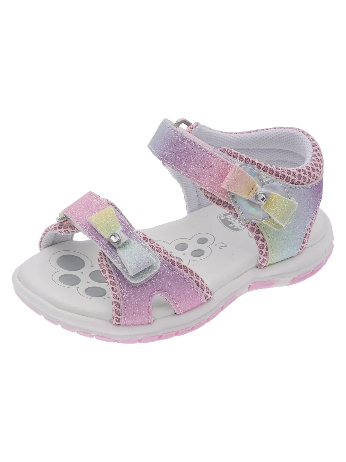 Design: Profielzolen; Type sluiting: Velcro sluiting; Materiaal: Imitatieleder; Motief: Kleurverloop; Materiaal: Imitatieleer, Mesh; Schoenneus: Open toe; Extra's: Glitterend, Applicaties; Hakhoogte: Platte hak (0-3 cm)