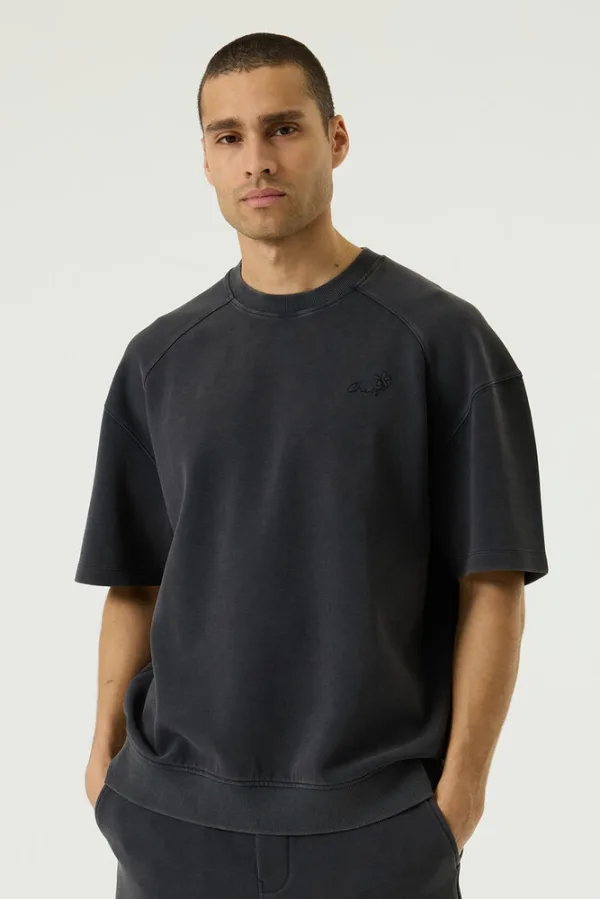 Verwassen interlock T-shirt met geborduurde borstprint. Dit T-shirt heeft een ronde hals, korte mouwen en een loose fit. Dit item is gemaakt van 80% katoen, 15% polyester en 5% elastaan. Better Cotton is een initiatief dat zich wereldwijd inzet voor betere omstandigheden in de katoenindustrie.