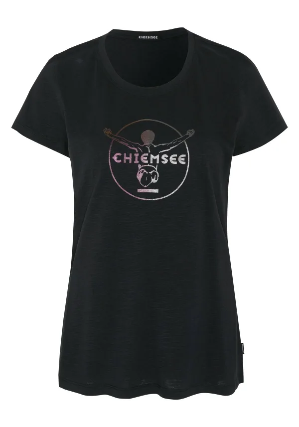 Dames t-shirt van het merk Chiemsee. Basis voor elke dag. Uit de serie Taormina. Korte mouwen shirt met ronde hals en logo op de voorkant. Comfortabel om te dragen door het gebruik van puur katoen.