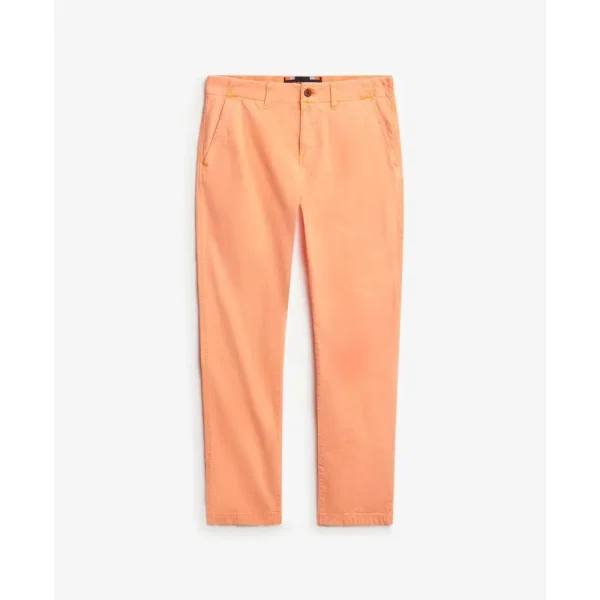 Slim fit. Dankzij de voldoende ruimte om te bewegen, creëert deze slim fit chino een elegante, aansluitende silhouet die gemakkelijk te dragen is. Knopsluiting met ritssluiting. Ceintuurlussen. Twee zijzakken en twee achterzakken met knoop. Sommige dingen zijn gemaakt om samen te gaan. Warmere dagen en een chino gaan hand in hand. De klassieke twillstof in combinatie met een casual stijl biedt een look die je helpt je goed te voelen en je beste beentje voor te zetten. Te dragen met een vintage polo of een linnen shirt voor een chique casual look.