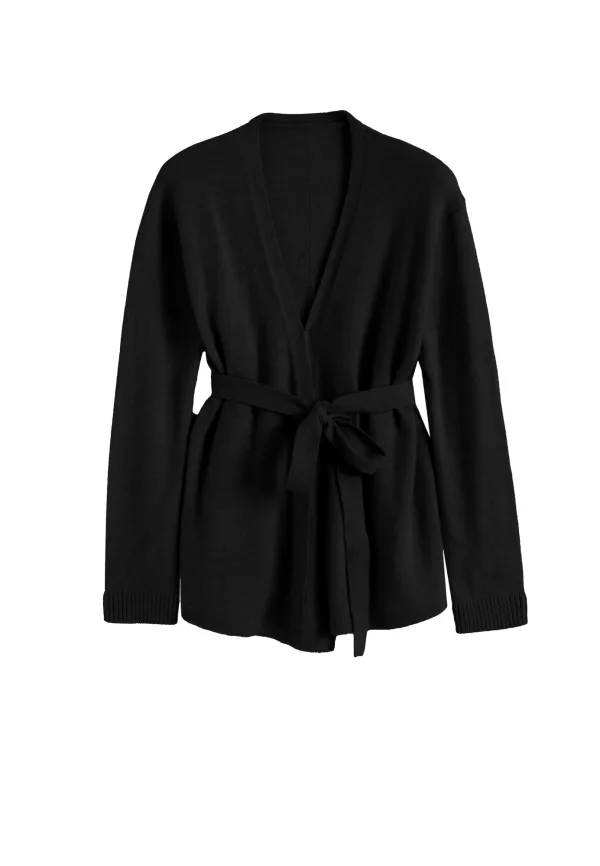 Design: Geribd ceintuurtje, Tailleriem, Zonder sluiting; Materiaal: Knitwear; Halstype: V-hals; Motief: Effen; Details: Wikkel design; Extra's: Fully fashioned, Voelt zacht aan; Pasvorm: Losse pasvorm; Armlengte: Lange mouw; Lengte: Normale lengte