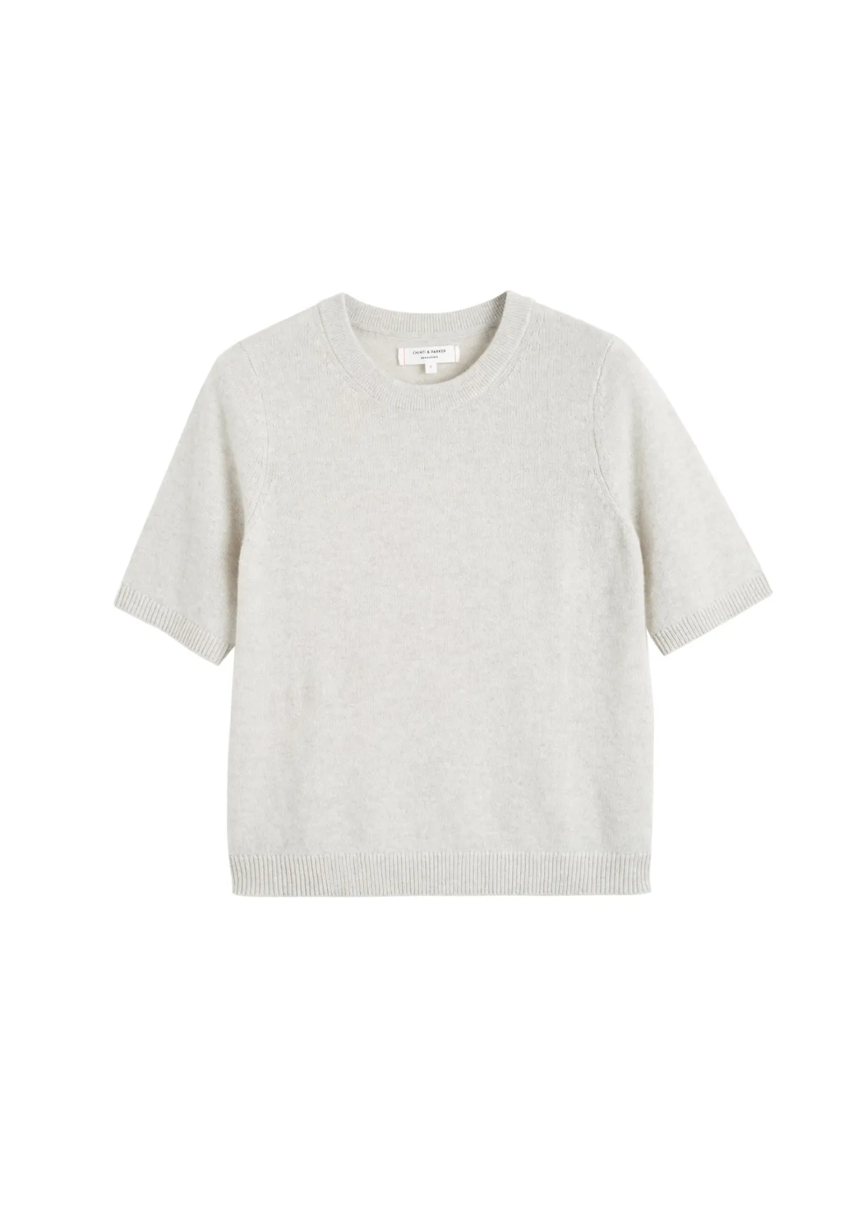 Design: Geribbelde kraag; Materiaal: Knitwear; Halstype: Ronde hals; Motief: Mélange; Extra's: Fully fashioned; Pasvorm: Normale pasvorm; Armlengte: Halve mouw; Lengte: Normale lengte