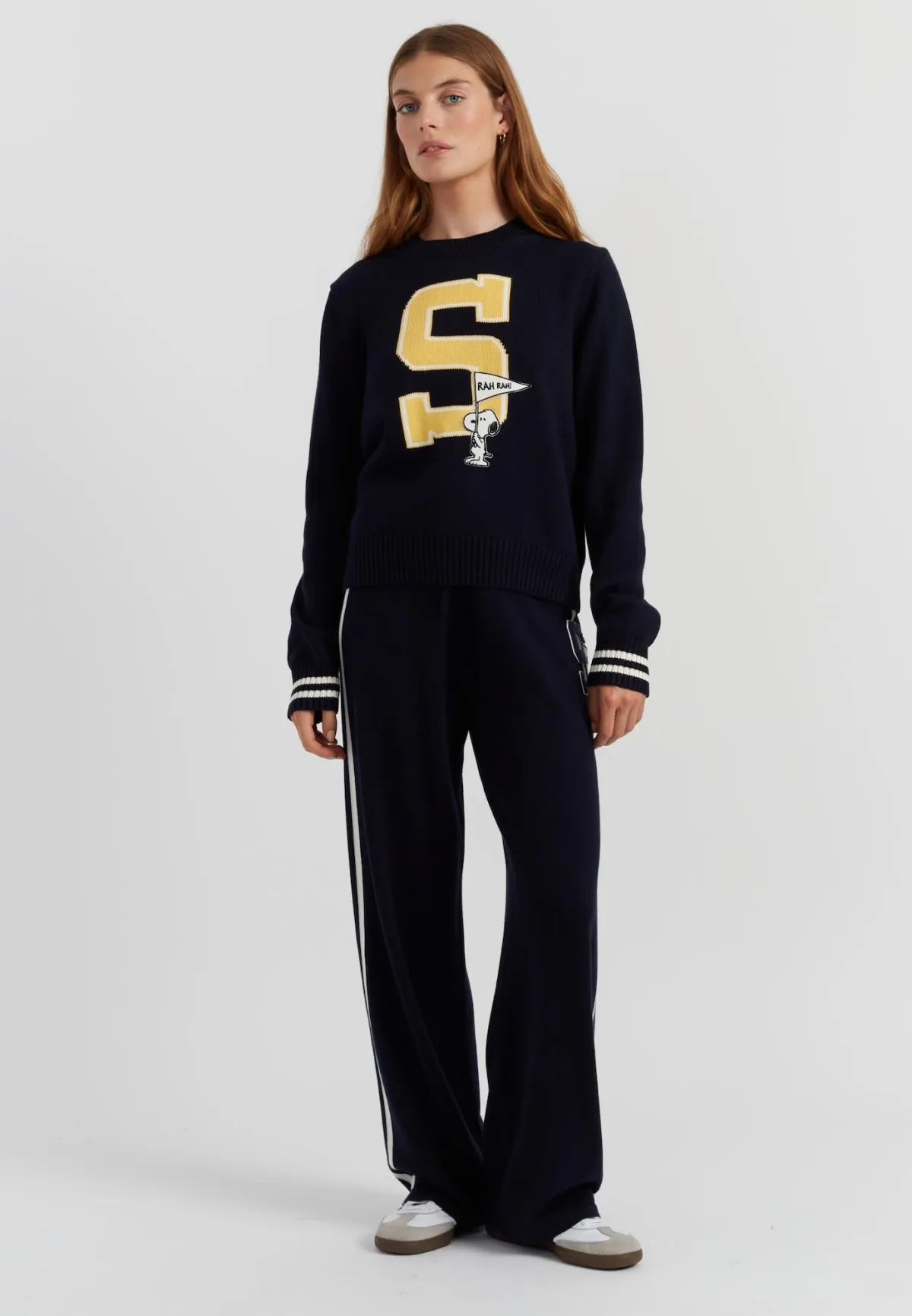 Chinti & Parker Trui ‘Snoopy Varsity’ navy / geel / zwart / wit