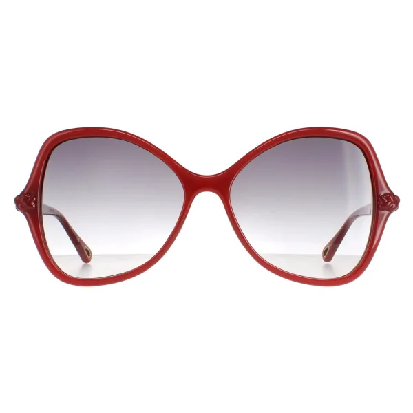 Chloe Butterfly Womens Donkere oranje grijze gradiënt Ch0001s zonnebril zijn een elegante vlinderstijl gemaakt van lichtgewicht acetaat. Het Chloe -logo is gegraveerd in de slanke tempels voor merkherkenning.