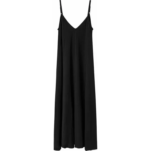 Lange jurk met bandjes en een V-hals in een casual model. Ontworpen om elke vrouw een comfortabel en sensueel gevoel te geven. Dankzij het eenvoudige ontwerp is het een universele basis voor vele stijlen. Het accentueert de decolleté en de rug prachtig en is voorzien van praktische steekzakken. Gemaakt van een luchtige en aangenaam aanvoelende stof.