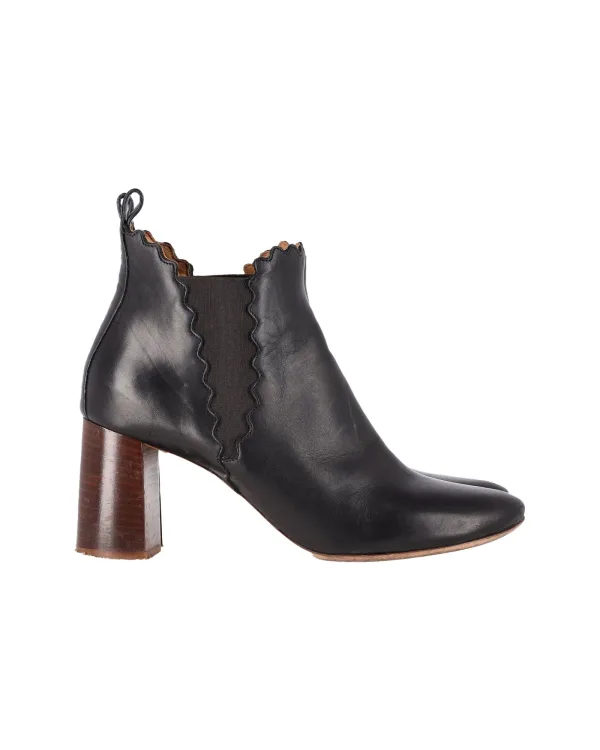 Chloé Scalloped Chelsea Boots in Zwart Leer