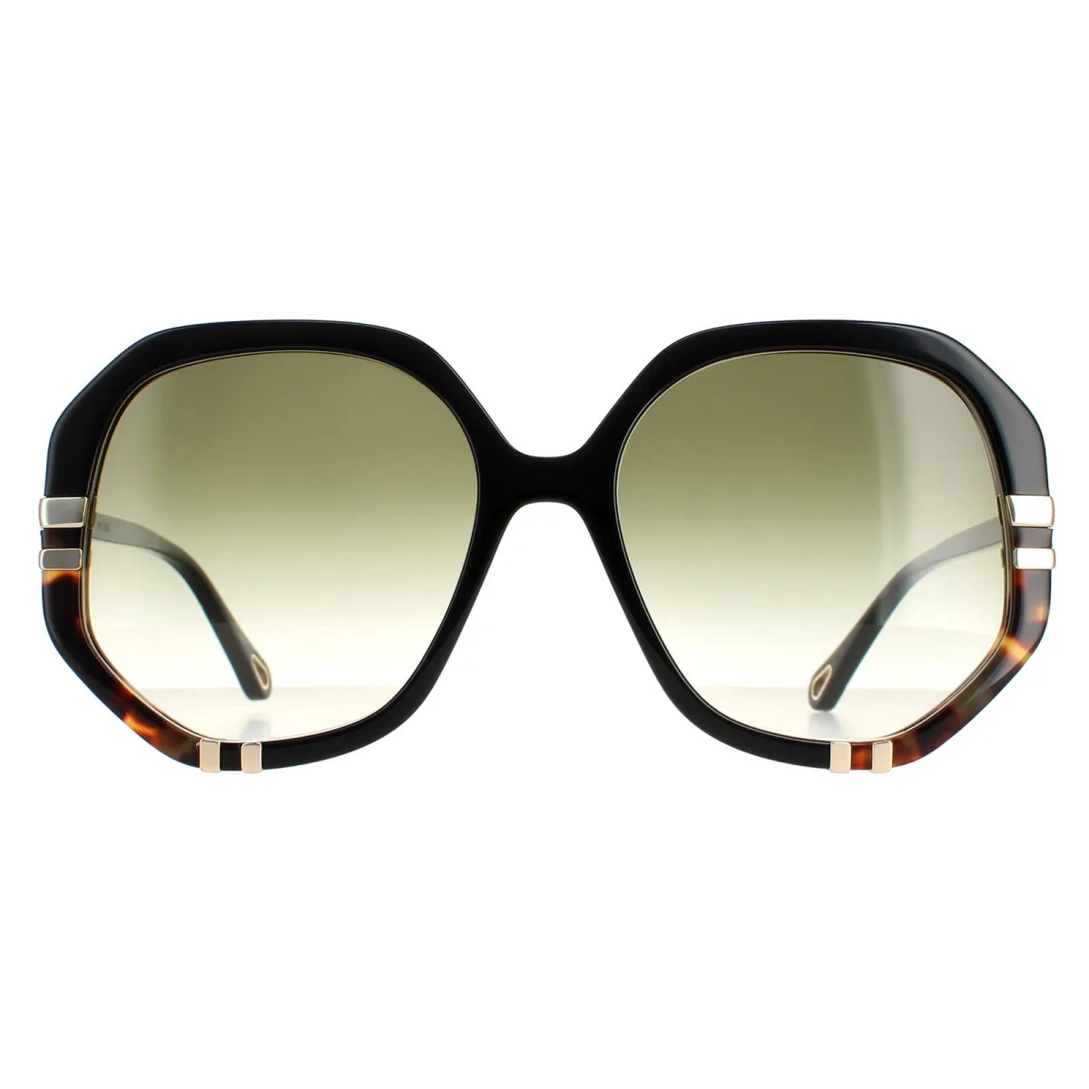 Chloe Square dames glanzende zwarte en schildpad groene gradiënt CH0105S zonnebril zijn een glamoureuze hexagonale stijl vervaardigd van lichtgewicht acetaat. Het Chloe -logo is voorzien van de slanke tempels voor merkauthenticiteit.