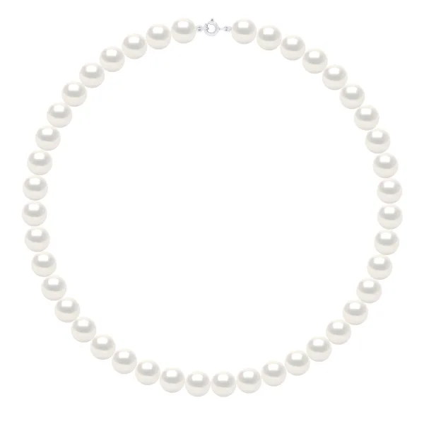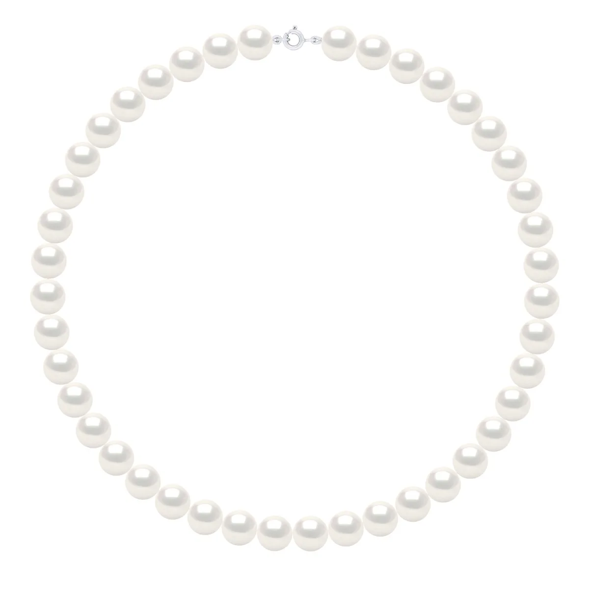 CHOKER - Echte Cultiveerbare Zoetwater Parels Rond 10-11 mm - KLEUR NATUURLIJKE PAREL WIT - Veerklem HAAK Prestige Wit Goud - Lengte 50 cm - Geleverd met Certificaat van Authenticiteit en Internationale Garantie - GEMAAKT IN FRANKRIJK