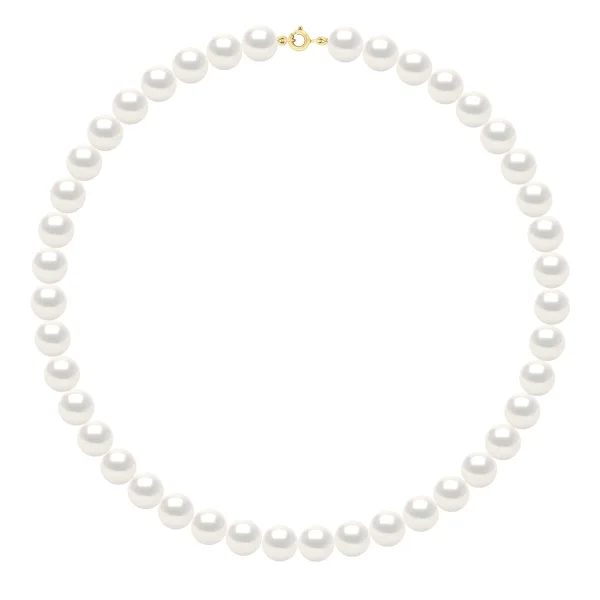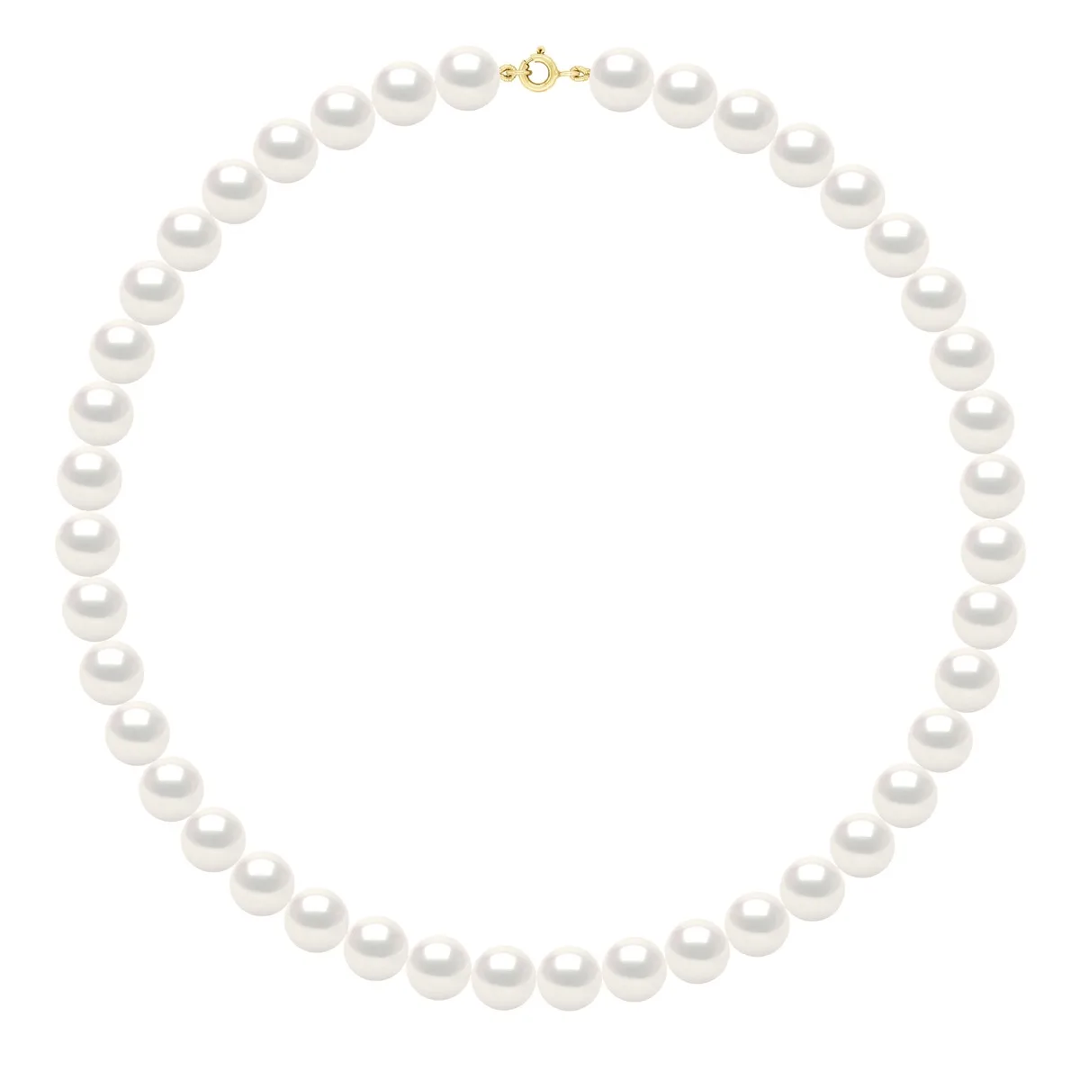 CHOKER - Echte Cultuurzoetwaterparels Rond 10-11 mm - KLEUR NATUURLIJKE PAREL WIT - Veerring Sluiting PRESTIGE Geel Goud - Lengte 50 cm - Geleverd met Certificaat van Echtheid en Internationale Garantie - GEMAAKT IN FRANKRIJK