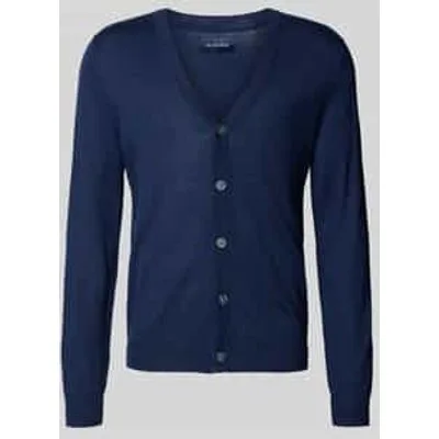 Gebreid herenjack van Christian Berg Men;Katoenmix;Nauwsluitend model;V-hals;Knoopsluiting;Ribboorden;Ruglengte bij maat M: 70 cm;Mouwlengte bij maat M: 70 cm
