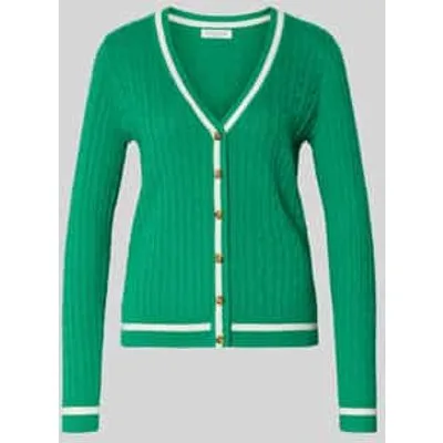 Gebreid damesjack van Christian Berg Women;Katoenmix;Regular fit;Ribboorden;V-hals;Knoopsluiting;Ruglengte bij maat S: 58 cm;Mouwlengte bij maat S: 66 cm