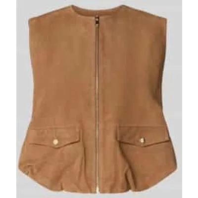 Damesgilet van Christian Berg Women Selection;Echt chevreau-suède;Regular fit;Ronde hals;Ritssluiting;Klepzakken met drukknoopsluiting