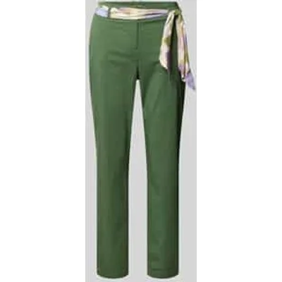 dames chino van Christian Berg Woman;Elastische katoenmix met viscose;slim fit;Verkorte pasvorm;Afneembare stoffen band;knoop- en ritssluiting