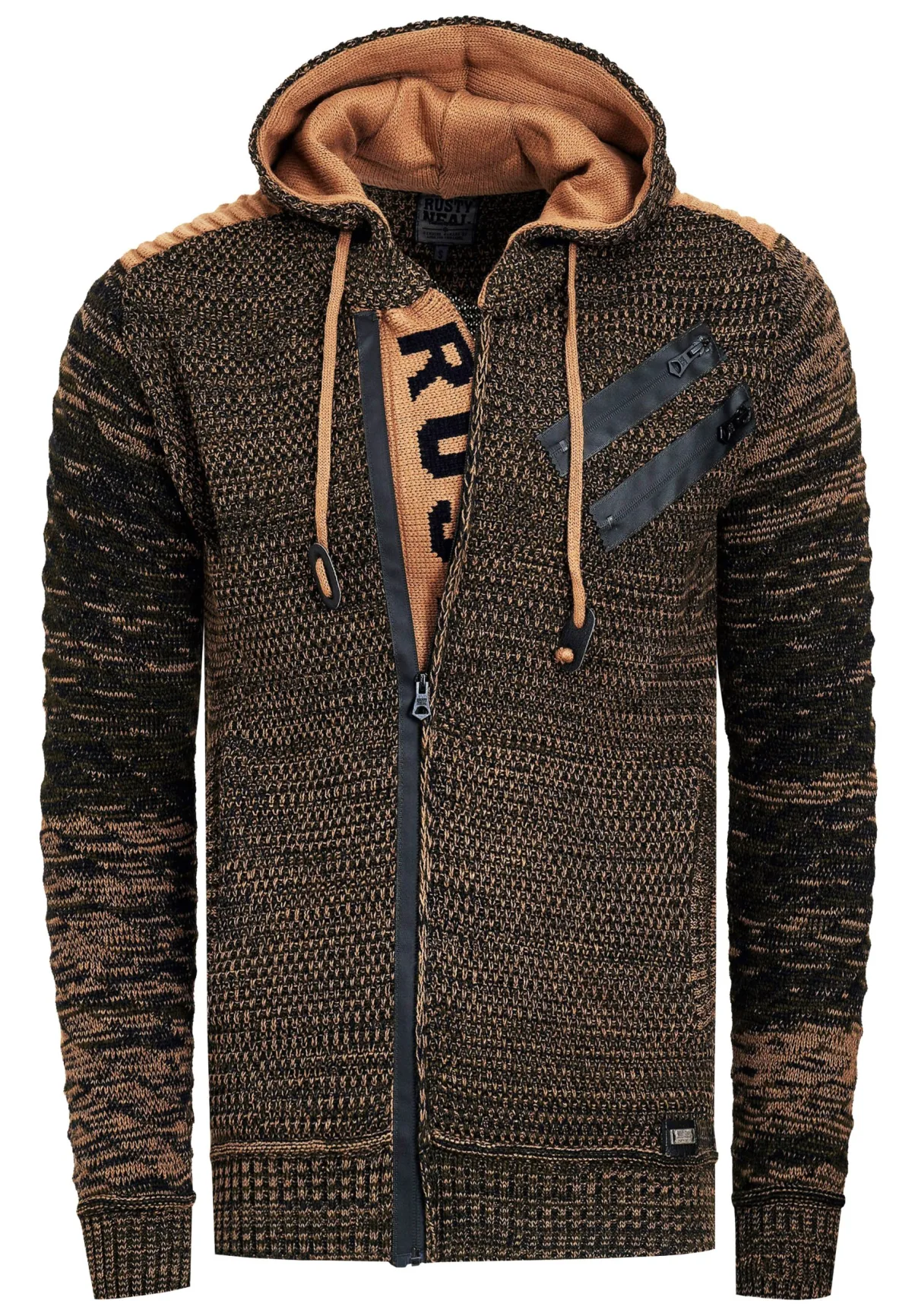 Chunky gebreide jas met capuchon met volledige rits Prijzen