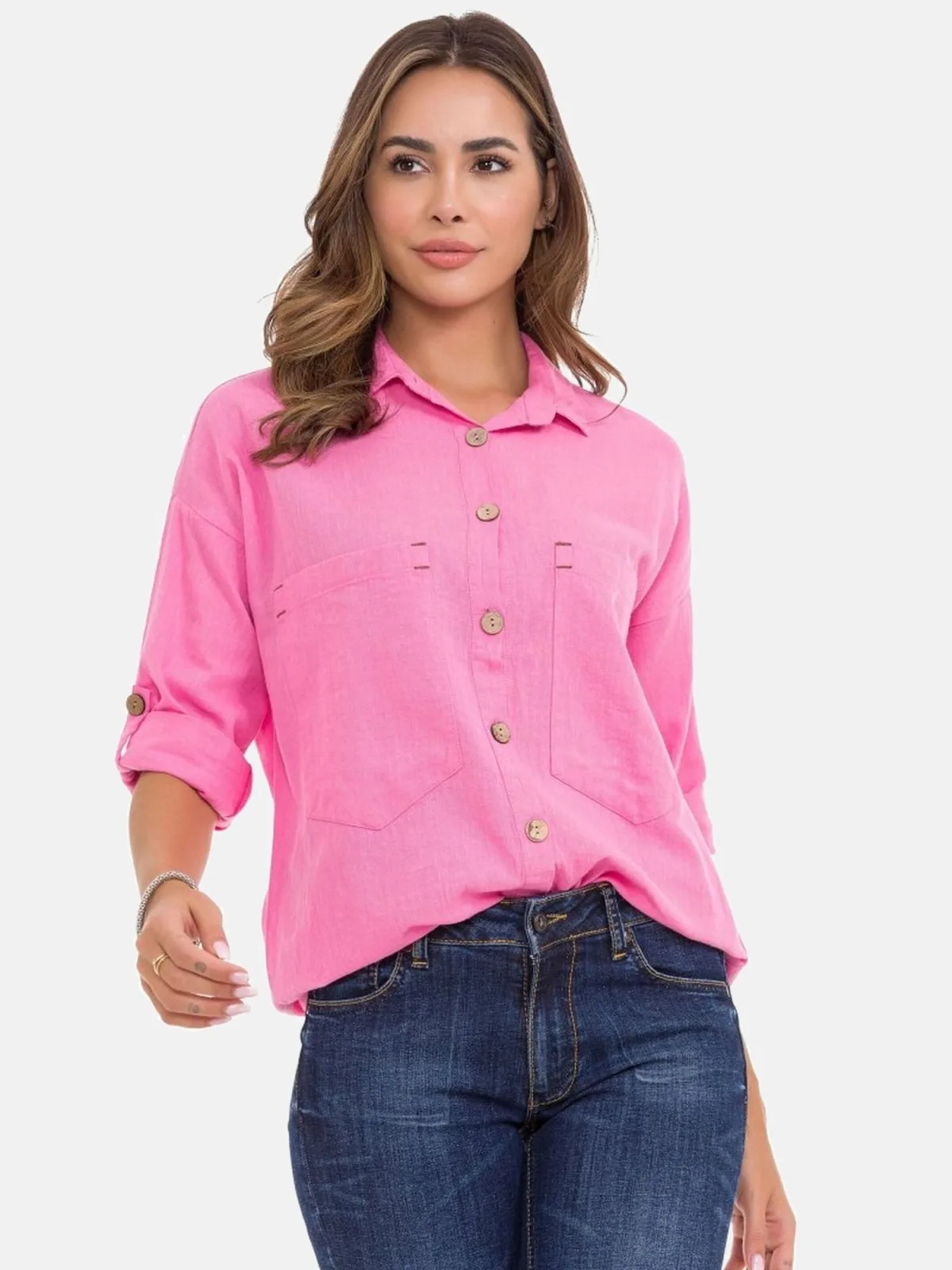 Blouse type: Klassieke blouse; Design: 1-knoops manchetten, Overcut schouder, Borstzak, Roll-up mouwen; Type sluiting: Knoopsluiting; Materiaal: Katoen; Motief: Effen; Kraag: Kentkraag; Extra's: Contrasterende naden; Pasvorm: Losse pasvorm; Armlengte: Lange mouw; Lengte: Normale lengte