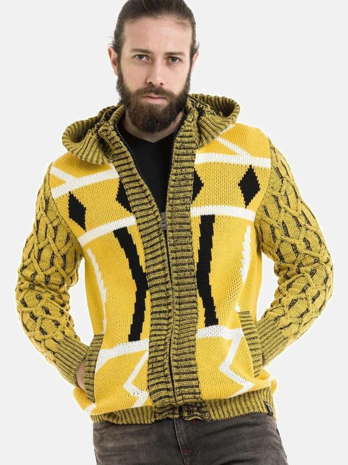 Specificaties: CIPO & BAXX Gebreid vest geel / zwart / wit