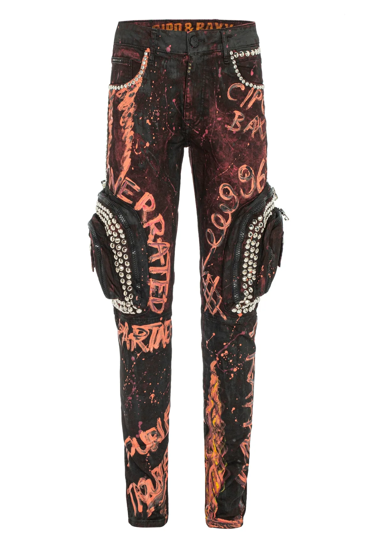 CIPO & BAXX Jeans oranje / bourgogne / zwart