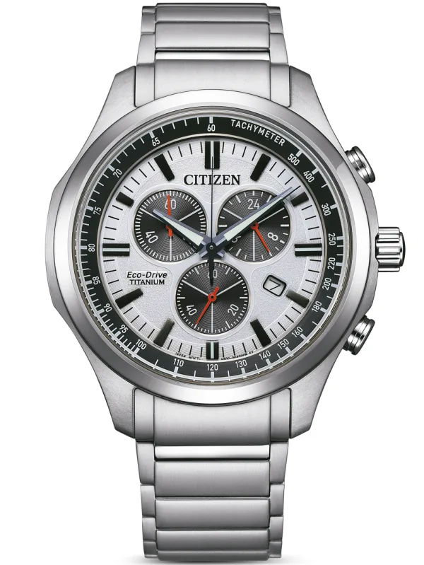 Deze Citizen Chronograaf Horloge voor Heren is het perfecte tijdstuk om te dragen of cadeau te geven. De zilveren ronde kast van 43 mm, gecombineerd met de comfortabele zilveren titanium horlogeband, zorgt ervoor dat je volop kunt genieten van dit verbluffende tijdstuk zonder compromissen. Aangedreven door een hoogwaardig Eco-Drive uurwerk en waterbestendig tot 10 bar, blijft je horloge tikken. ECO-DRIVE - Eco-Drive is een 40 jaar oude kerntechnologie van CITIZEN die zelfs bij zwak licht energie genereert, waardoor horloges langer dan zes maanden in het donker kunnen lopen. Dit chronograaf horloge heeft een kalenderfunctie: datum, zonne-energie, stopwatch, 24-uursweergave, lumineuze wijzers en tachymeter. Hoogwaardige zilveren titanium band van 21 cm lengte en 19 mm breedte met een vouwsluiting met drukknop. Kastdiameter: 43 mm, kastdikte: 10 mm, kastkleur: zilver en wijzerplaatkleur: wit.