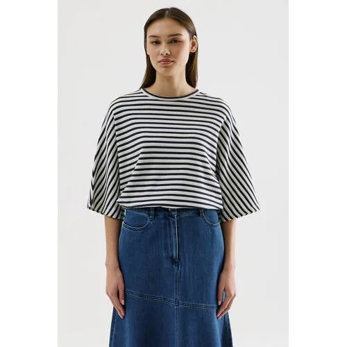 Breng frisse voorjaarskleuren in je garderobe met deze gestreepte katoenen dames top van CKS. De combinatie van blauw en ecru zorgt voor een heldere, moderne uitstraling die makkelijk te combineren is met je favoriete jeans, pantalon of rok. De trui-achtige knit voelt zacht aan, sluit mooi aan rond de hals en geeft net wat extra warmte op wisselvallige dagen in de lente.Details die het verschil maken Kleur: blauw/ecru met een tijdloze streep Half lange, rechte mouwen voor een verzorgd silhouet Ronde hals die prettig aansluit en mooi boven elke broek of rok valt Gemaakt van katoen, dat zacht aanvoelt op de huid Zonder zakken voor een rustige, nette look Onderdeel van de Boutique collectie, ideaal voor een iets gekledere outfit Wasvoorschrift: wolwas, voorkomt dat de knit zijn vorm verliest Strijkvoorschrift: warm strijkbaar (2 punten) voor een glad resultaat Droogvoorschrift: niet drogen in de droogtrommel, zo blijft de top langer mooiCasual of gekleed in het voorjaarDeze TIAMA top draag je net zo makkelijk casual als wat gekleder. Combineer met een lichte jeans en sneakers voor een ontspannen dag, of met een effen pantalon en loafers voor een nette, maar toch comfortabele look. De half lange mouwen maken het een fijne keuze voor lente en vroege zomer.CKS: speelse mode met een moderne twistCKS is een Belgisch modemerk dat bekend staat om zijn eigentijdse collecties met kleur en print. De ontwerpen zijn zorgvuldig uitgewerkt, met aandacht voor pasvorm en draagcomfort in het dagelijks leven. Zo voeg je met ieder kledingstuk eenvoudig een modieuze, maar toch toegankelijke stijl toe aan je kast.Een fijne knit top voor dagen waarop je er verzorgd uit wilt zien en je toch vrij wilt bewegen.